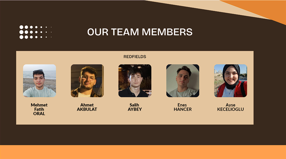 Dört Havacılık ve Uzay Mühendisliği, bir Elektrik ve Elektronik Mühendisliği öğrencisinden oluşan "REDFIELDS" ekibimiz ise "Mars'ta Tarım" adı altında geliştirdikleri proje ile "En İyi Tasarım" ödülüne layık görüldü ve ikinci oldu.